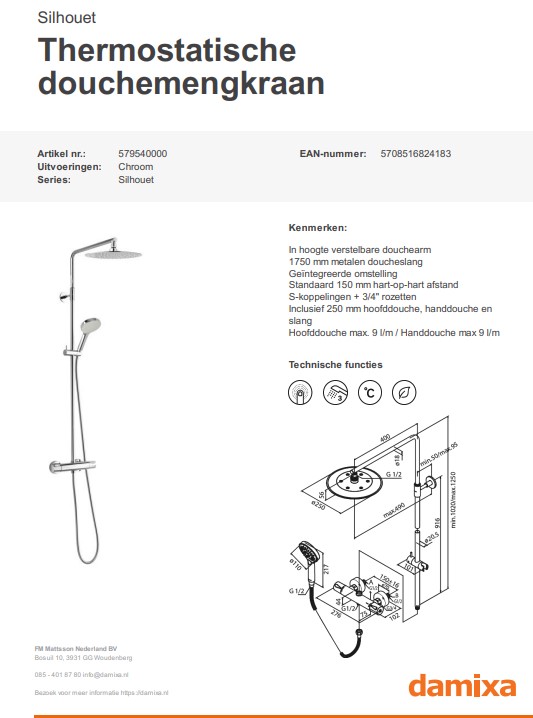 Damixa Thermostatische douchemengkraan chroom Silhouet